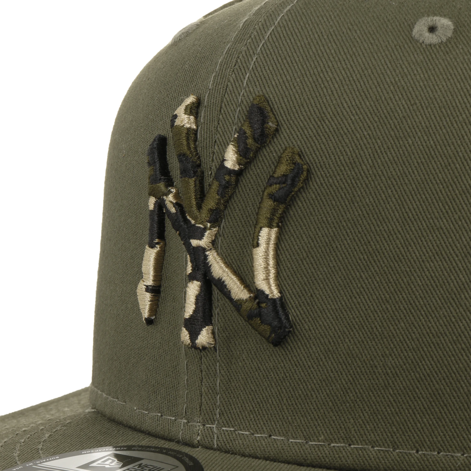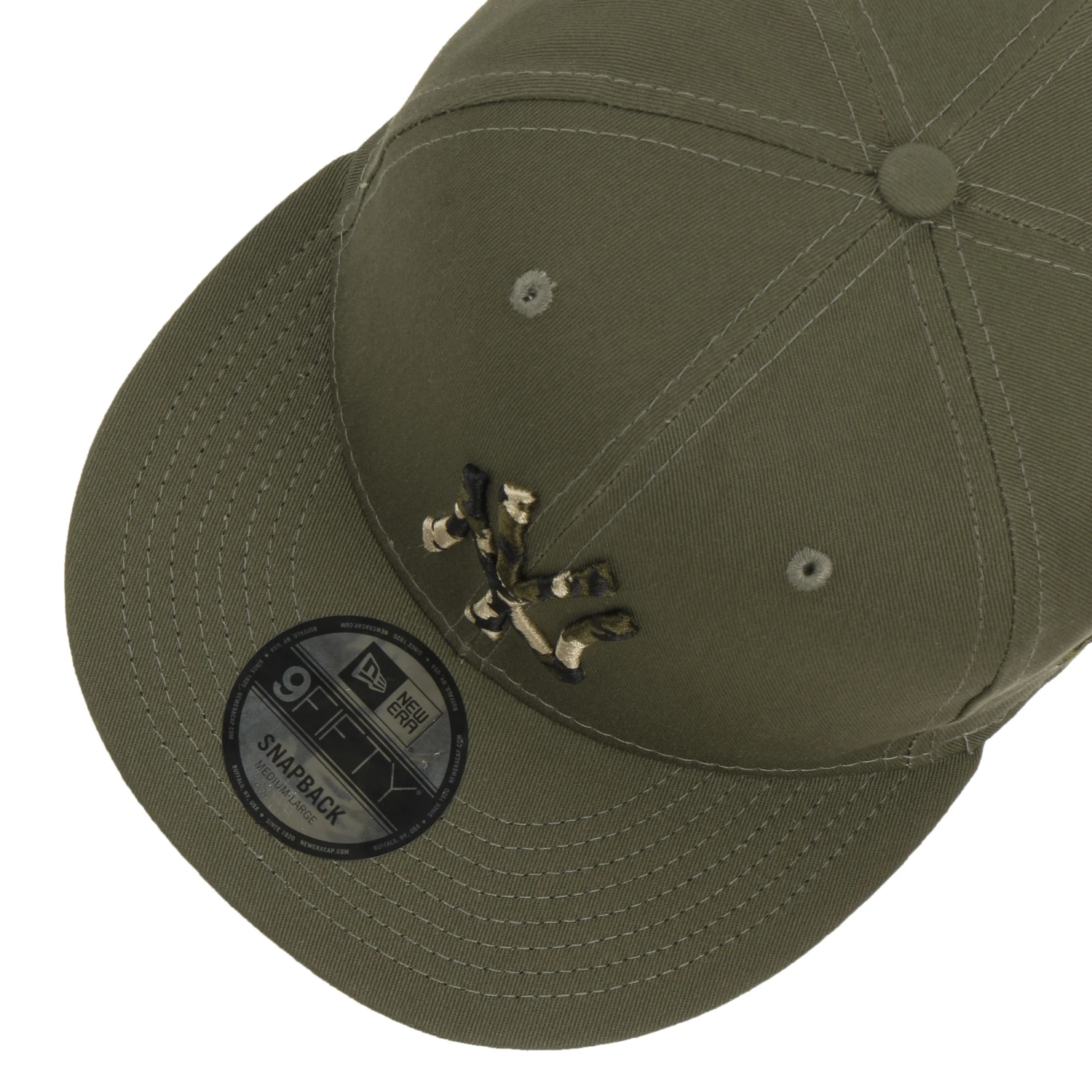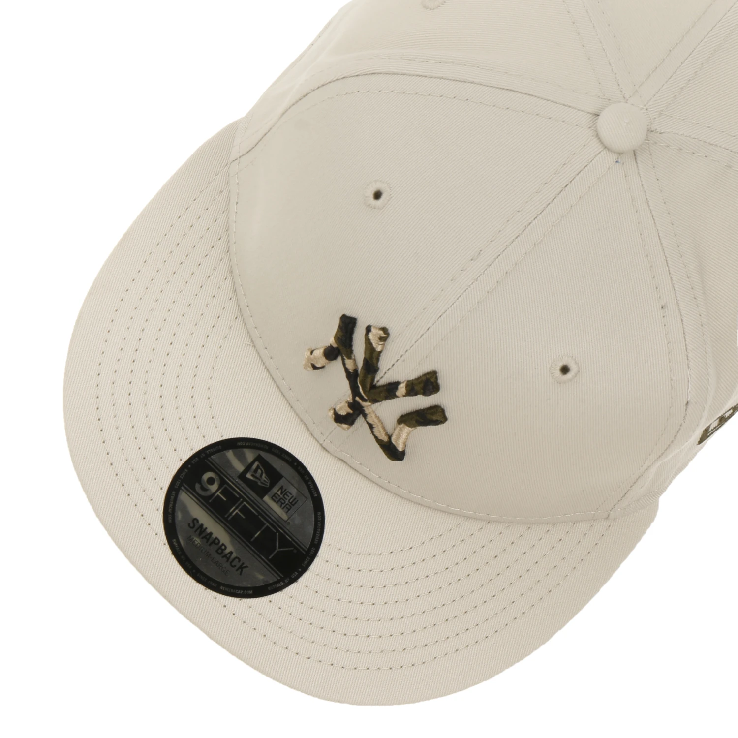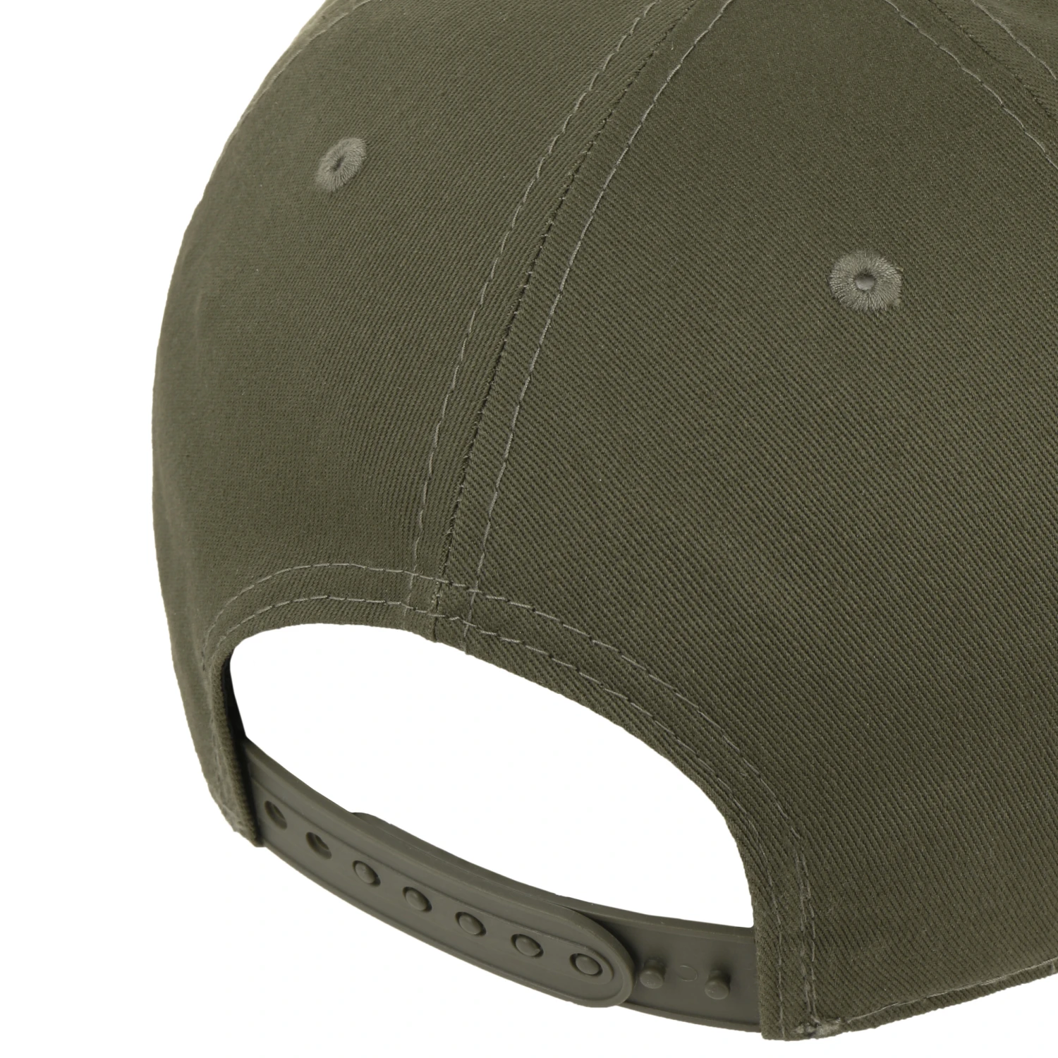 Ausgestattet mit umstickten Luftösen bietet die Kappe eine exzellente Durchlüftung und bringt den Kopf auch an wärmeren Tagen nicht ins Schwitzen. Auf der Rückseite lässt sie sich derweil für einen optimalen Tragekomfort dank der klassischen Snapback-Druckknopflasche ganz leicht auf die gewünschte Größe einstellen.