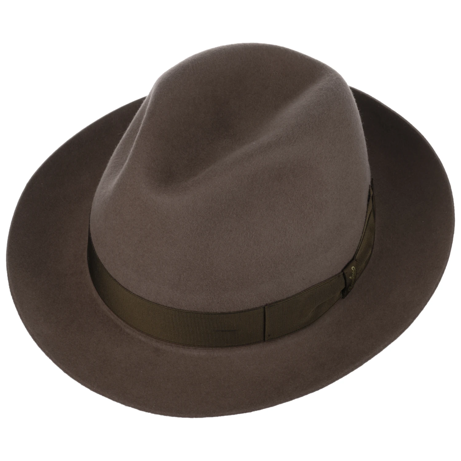 Der edle Fedora-Hut aus dem Hause Borsalino überzeugt mit einer eleganten Linie.