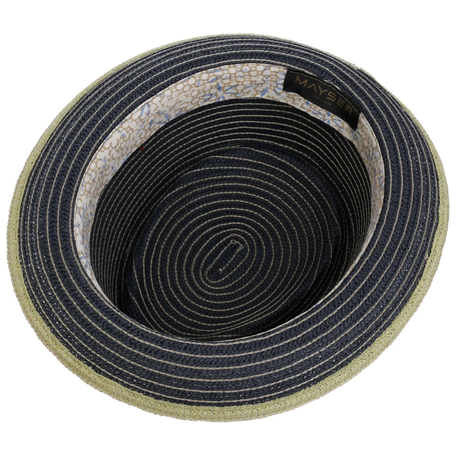 Das unifarbene Modell präsentiert sich in markanter Pork-Pie-Form. Kontrastnähte und ein edles gestreiftes Garniturband mit Schlaufe zieren den formschönen Hut. Ein sportlich-elegantes Sommer-Outfit rundet das hochwertige Accessoire gelungen ab.