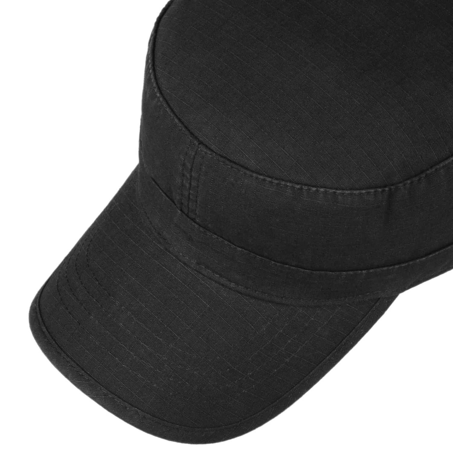 Die leichte Armycap aus 100% Baumwolle zeigt mit ihrer quadratischen Oberflächenstruktur einen typischen Military-Style.