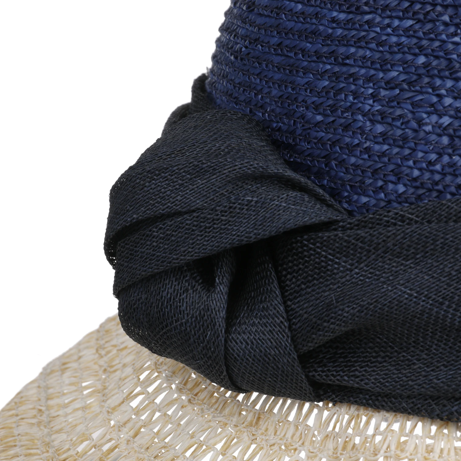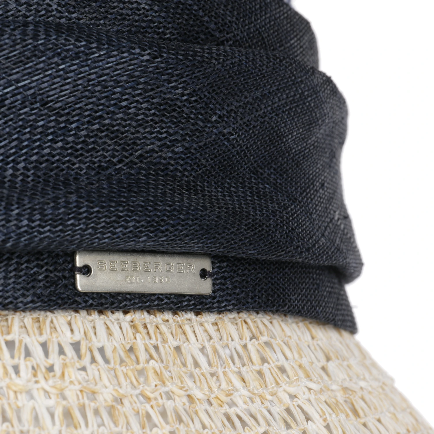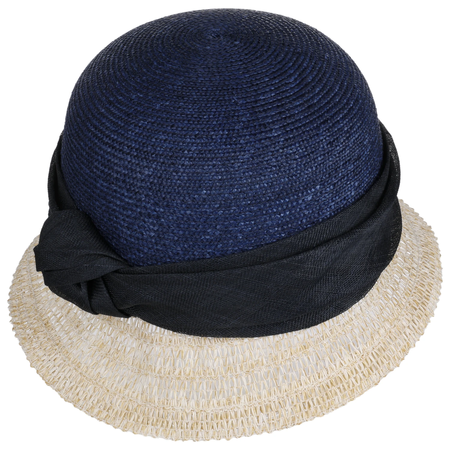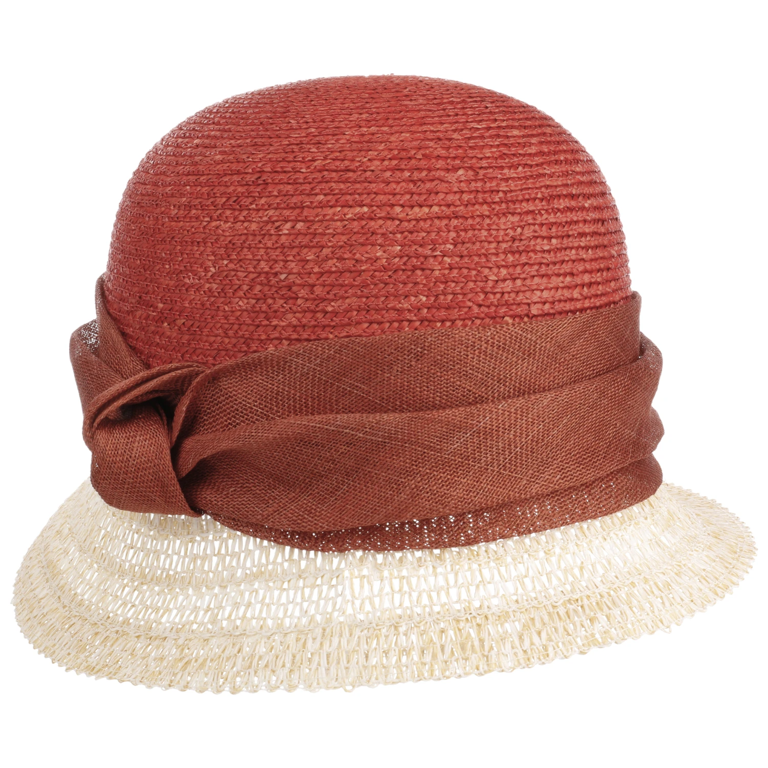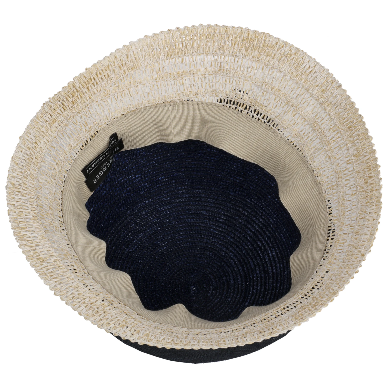 Unterschiedliche Farbtöne und Flechtmuster verleihen dem von Hand gefertigten Damenhut von Seeberger eine ansprechende lebhaft anmutende Ausstrahlung.