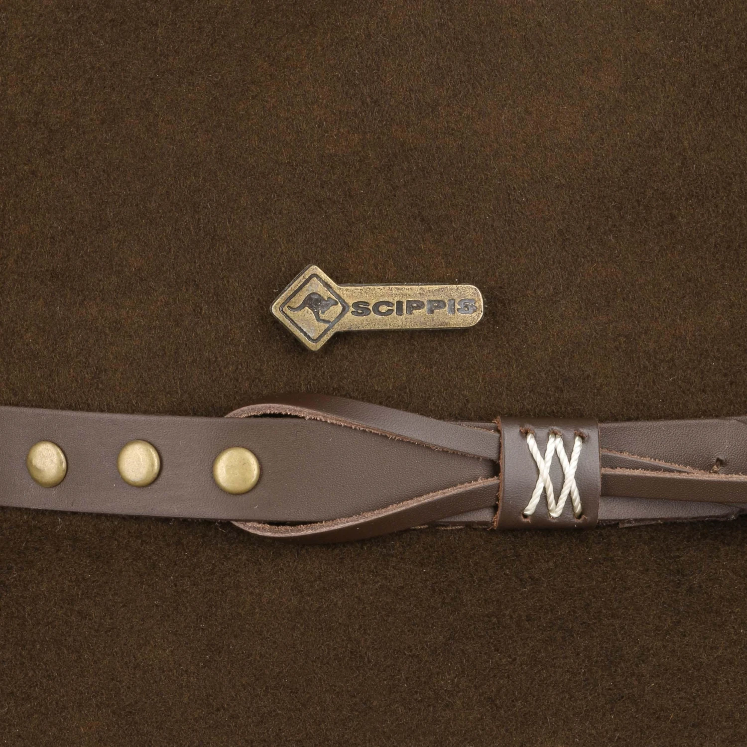 Der rustikale Hut aus wasserabweisendem Wollfilz bewährt sich in feuchtwaldigen wie in staubtrockenen Gefilden.
