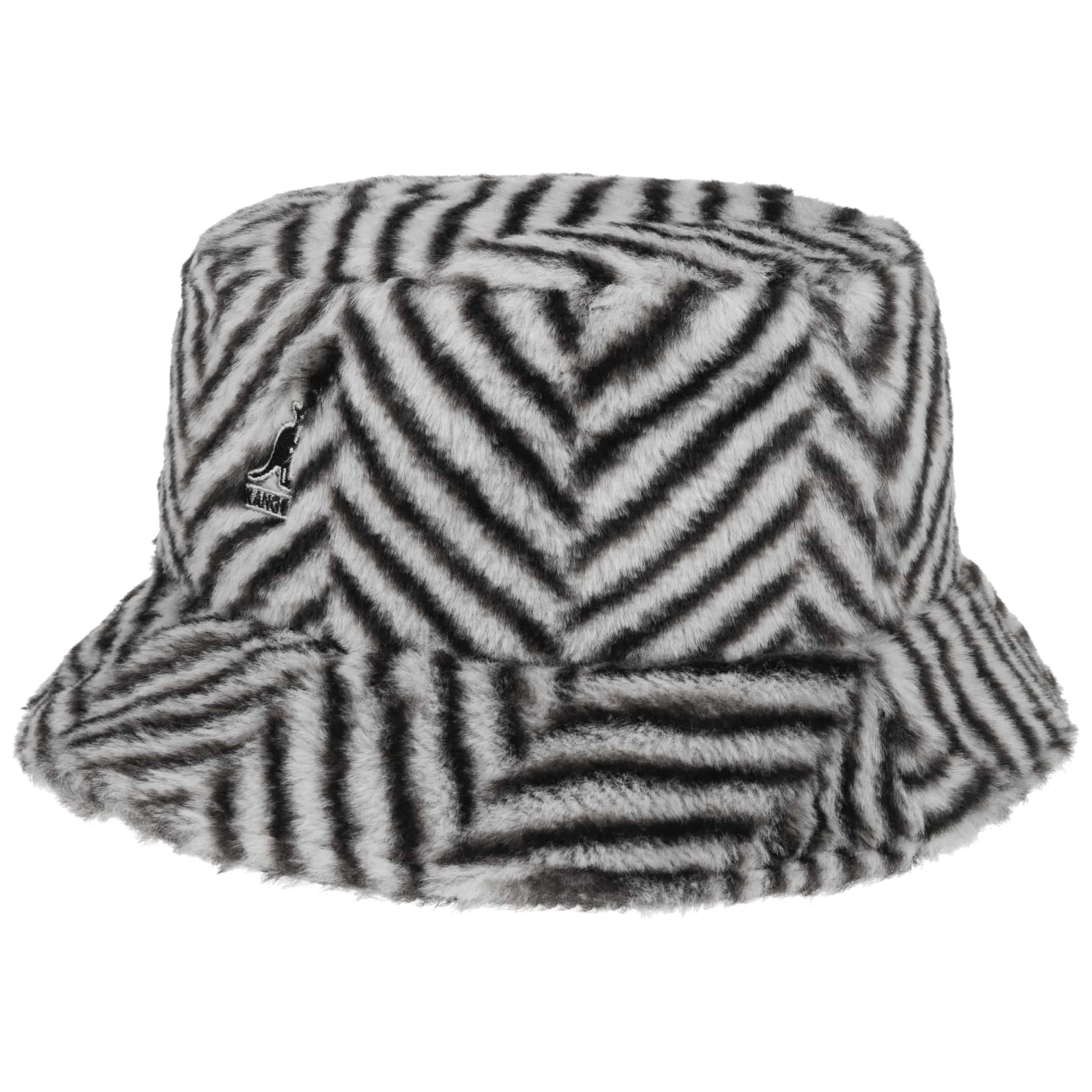 Breite Streifen, etwas unregelmäßig zusammengesetzt und im zweifarbigen Look gehalten, machen den Bucket Hat zum trendigen Streetwear-Accessoire. Kuscheliges Fake Fur verleiht ihm zudem angenehm weiche Trageeigenschaften. Dank seiner knautschbaren Qualität passt der Stoffhut auch problemlos ins Reisegepäck.
