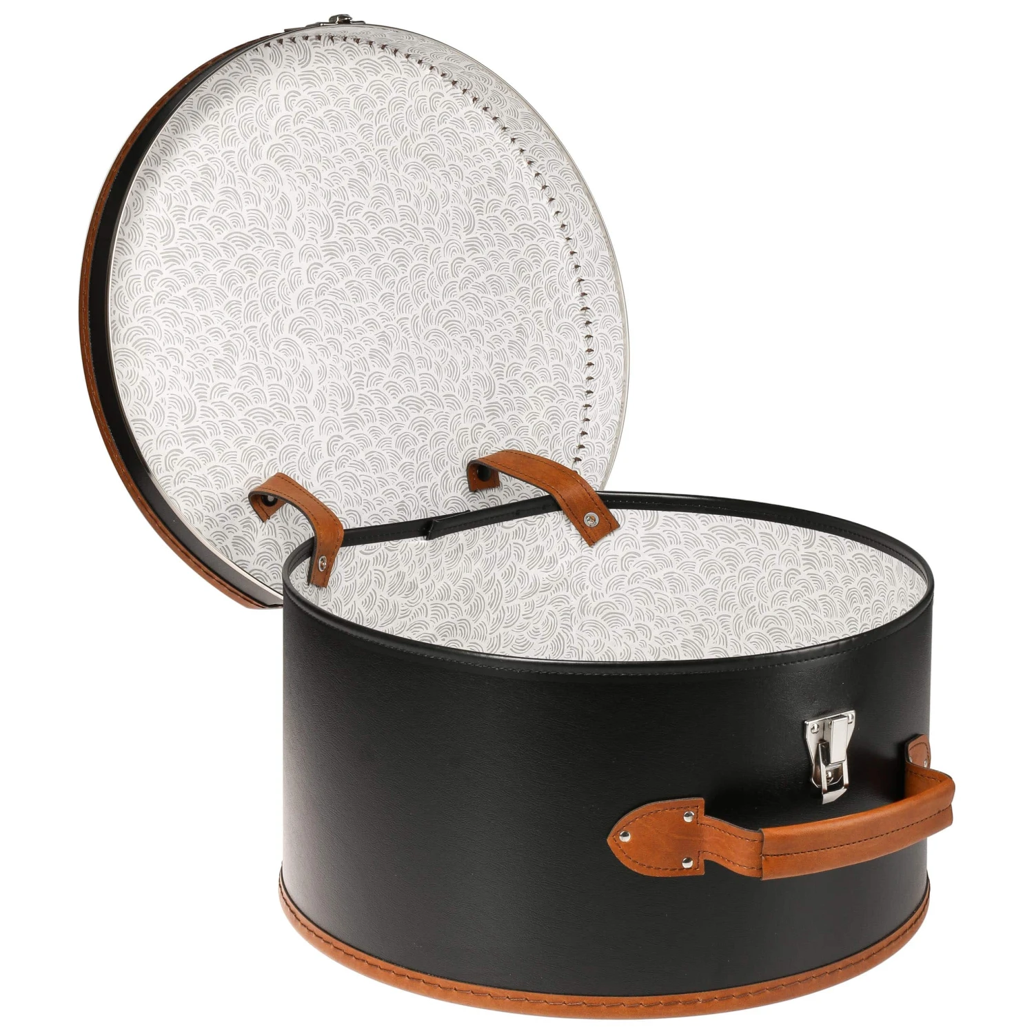 Ein Durchmesser von 40 cm sowie eine Höhe von 21 cm sorgen dafür, dass der Lieblingshut sicher verwahrt werden kann egal ob unterwegs oder in der Garderobe daheim. Ein dezenter Tragegriff bietet einen kompakten Tragekomfort.