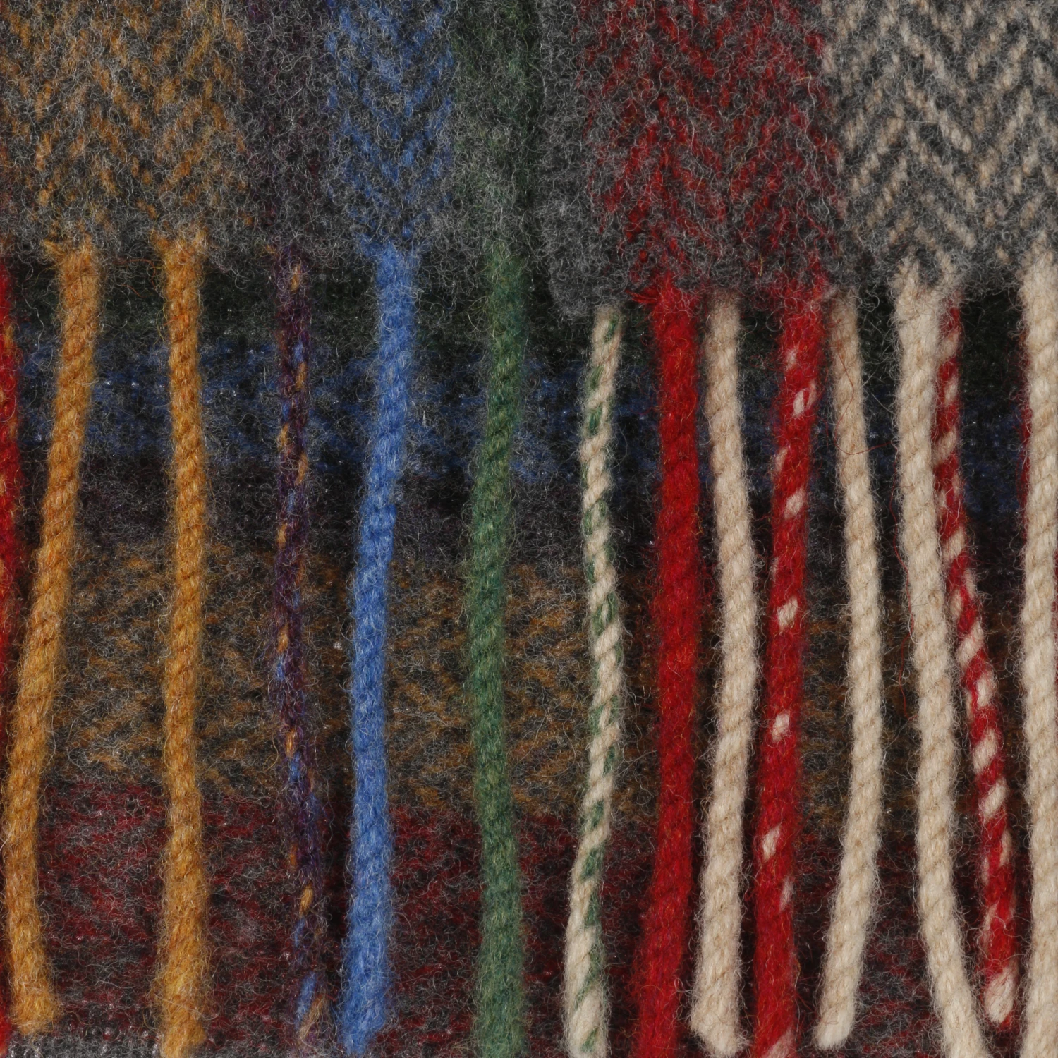 Farbige Streifen zieren den feinen Webschal und verleihen ihm eine fröhliche Ausstrahlung.