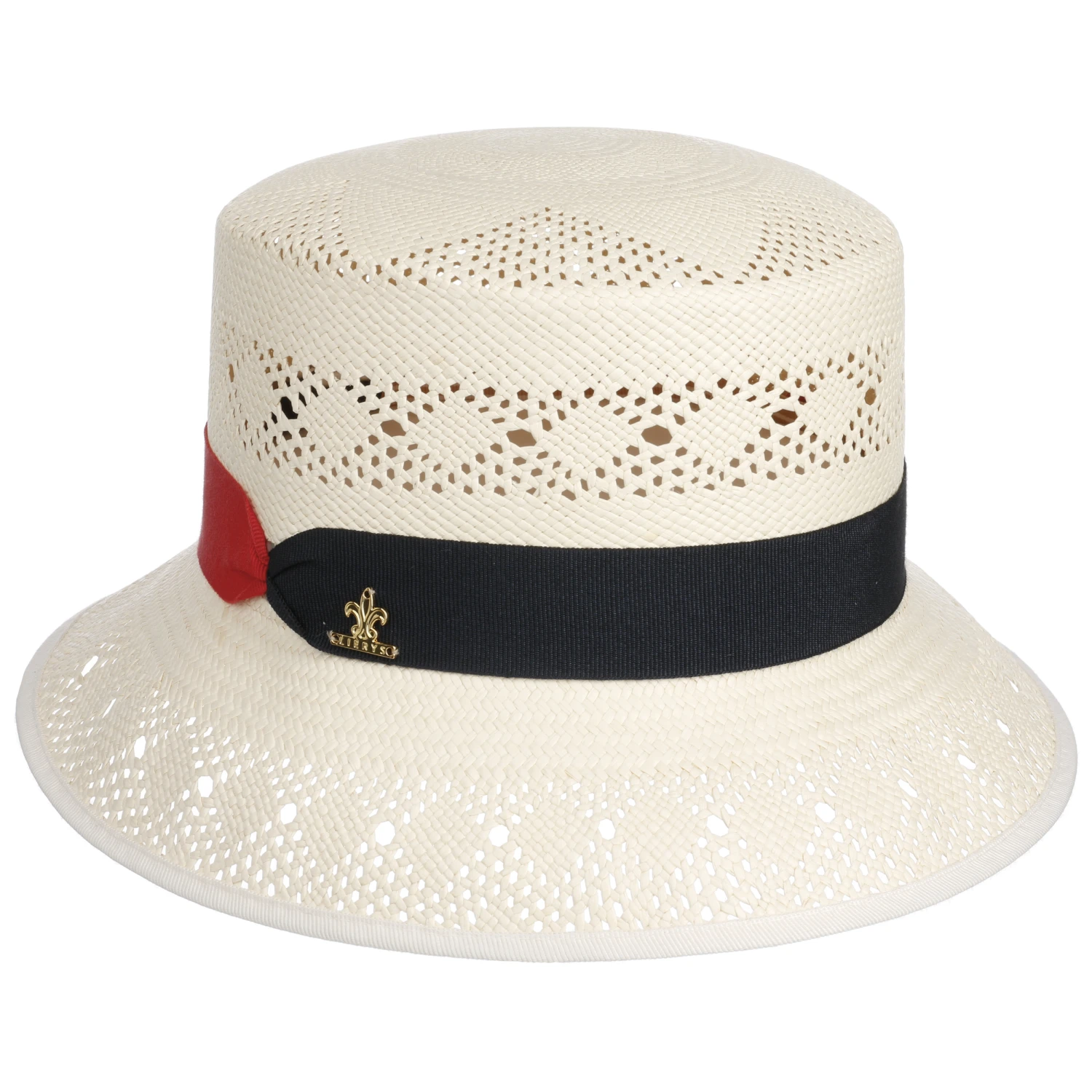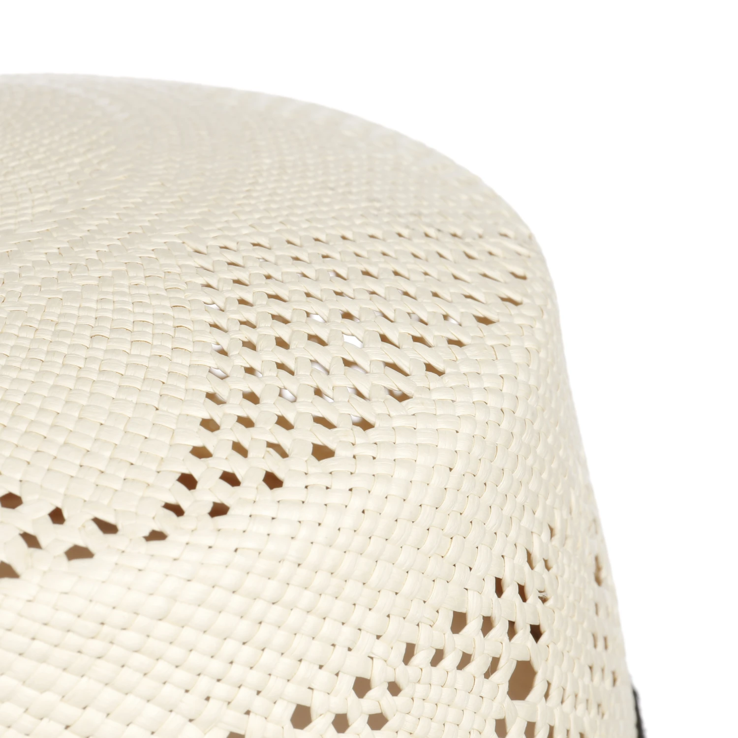 Die feine Häkeloptik mit Lochmuster in Krone und Krempe verleiht ihm nicht nur eine aparte Ausstrahlung, sondern macht den Damenhut auch zum angenehm luftigen Begleiter für warme Sommertage. Ein zweifarbiges Hutband mit Markenstickerei rundet den eleganten Look ab.