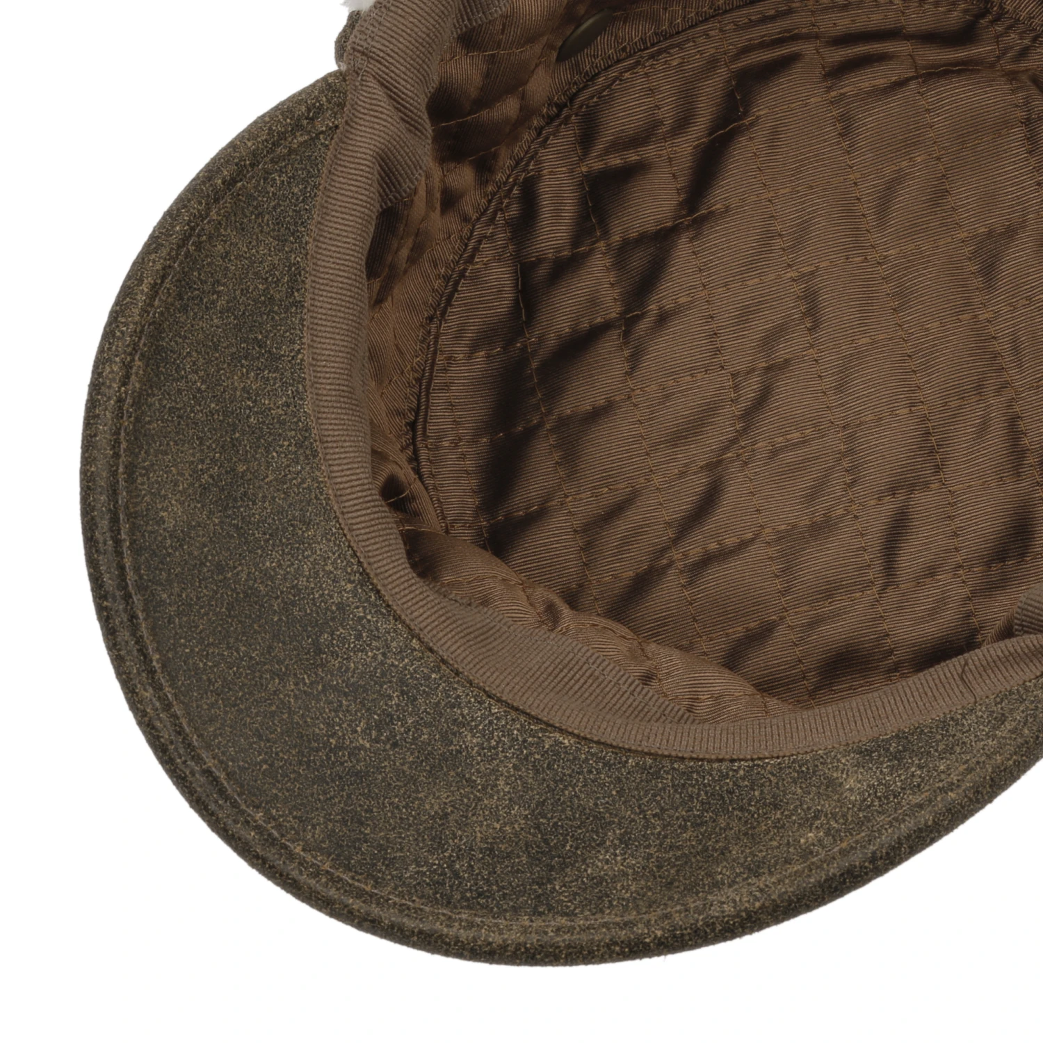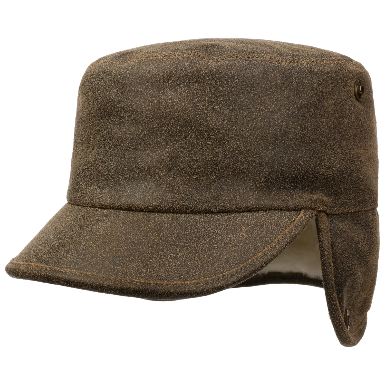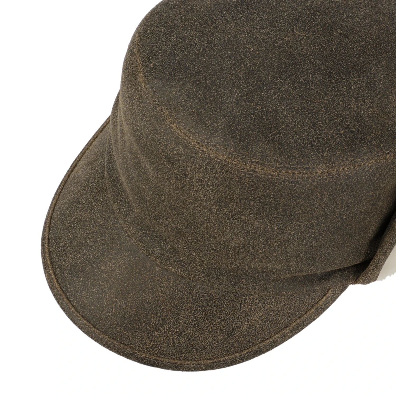 Die unifarbene Armycap von Lierys kommt in charakteristisch ausdrucksstarkem Look daher, was durch die Materialwahl Leder mit geschmeidig aufgerauter Oberfläche sowie die Einfassung um Visor und seitliche Verlängerungen noch unterstrichen wird.