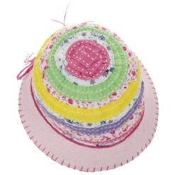 Mit diesem bunt gemusterten Glockenhut ist Ihr Nachwuchs der Star auf Rutsche und Kinderkarussell. Die farbenfrohe Krone ist aus verschiedenen Stoffen zusammengesetzt, während die geschmackvoll umrandete Krempe aus 100% Stroh gefertigt ist.