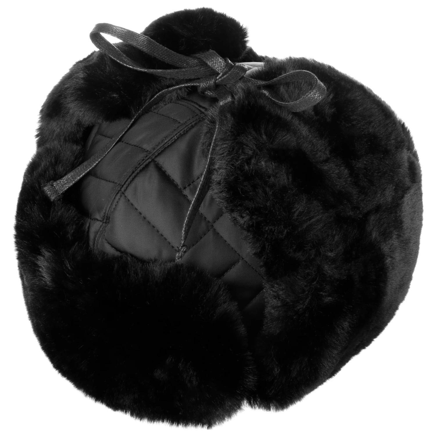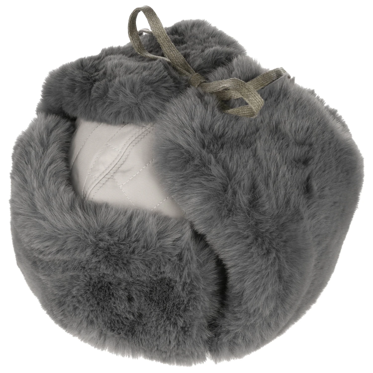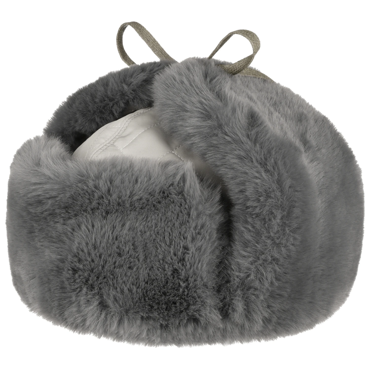 Außen ist die Fliegermütze von Kangol in unifarbenem Stepp gehalten, innen wartet sie mit kuscheligem Kunstfell auf, das auch um den Rand lugt und zeigt, wie behaglich sich der Kopf bis über die Ohren darunter fühlt.