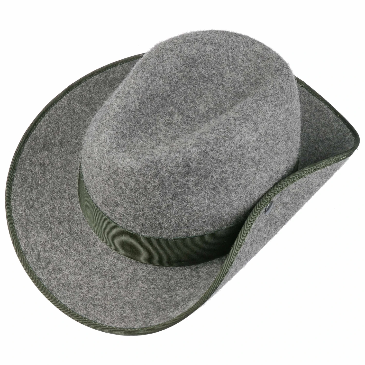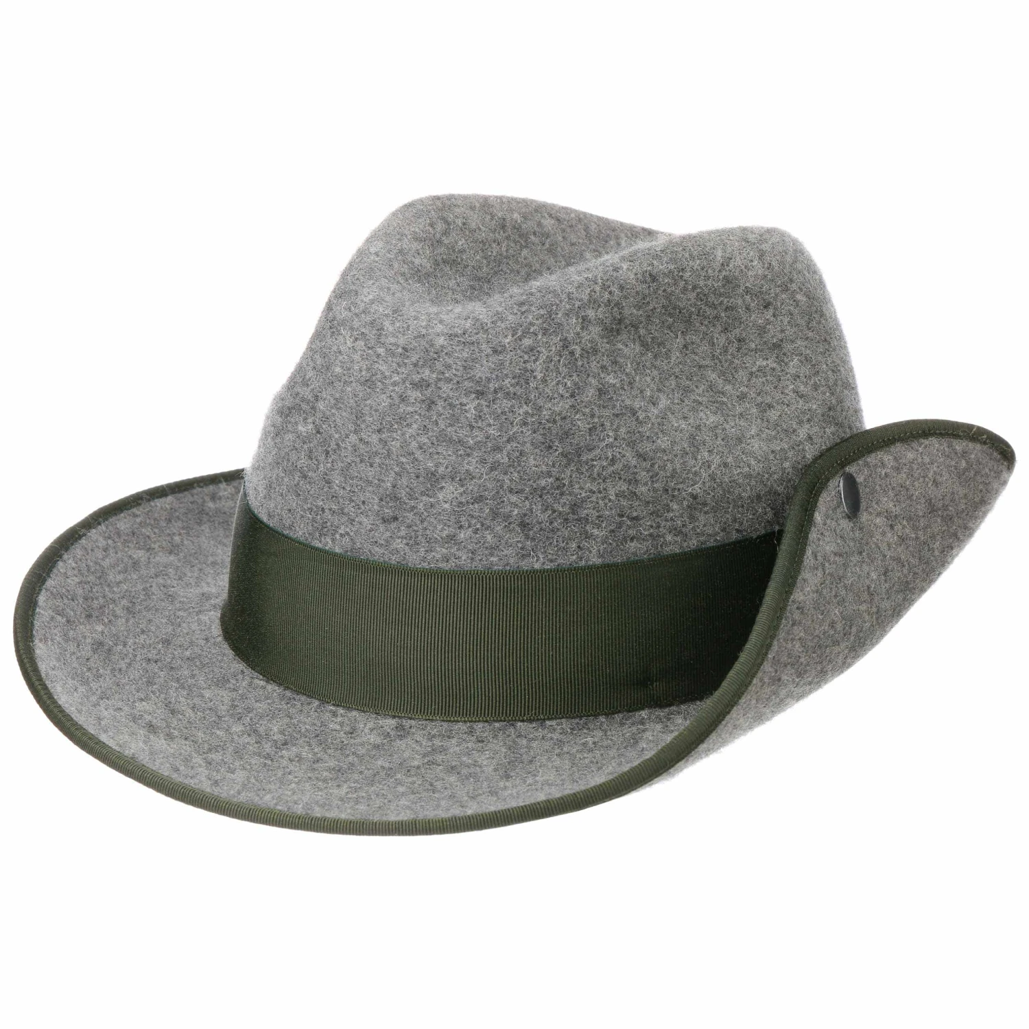 Eine optische Besonderheit, mit der sich die hochwertige Kopfbedeckung präsentiert, ist ihre dezent nach oben gebogene Krempe. Das integrierte Schweißband aus echtem Leder trägt maßgeblich zum hohen Tragekomfort des schicken Jagd- und Signalhutes bei.