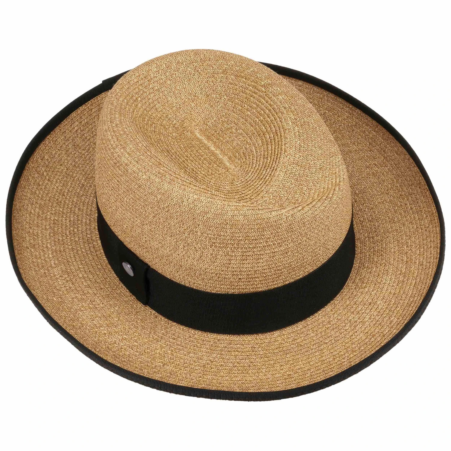 Ein breites Ripsband und eine farblich abgestimmte Paspel um die aufgestellte Krempe verleihen dem Sonnenhut seine elegante Ausstrahlung. Am Strand, auf der Strandpromenade oder im Café schützt der extravagante Bogarthut zuverlässig vor der Sonne.