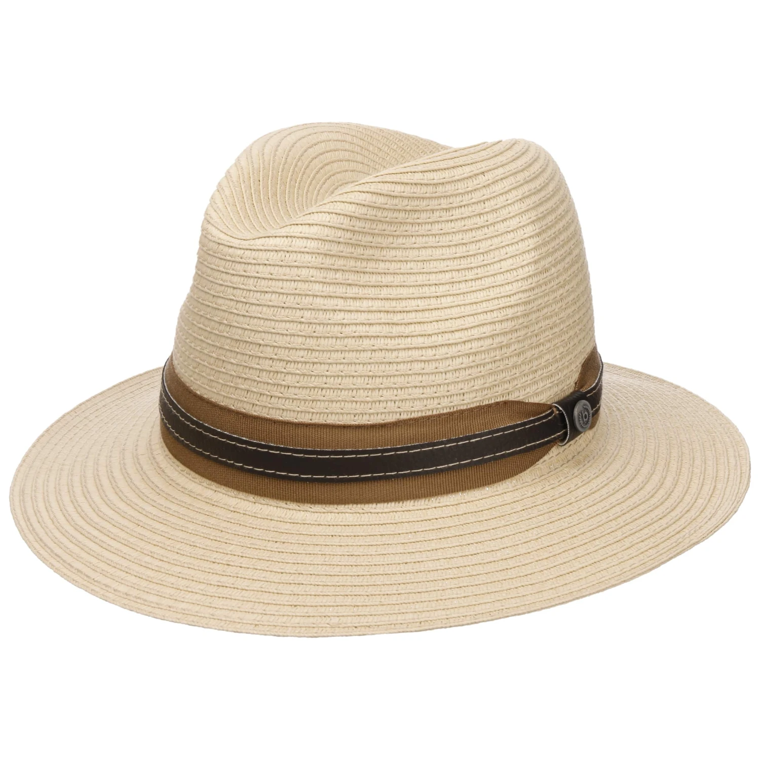 Die breite Krempe spendet wohltuenden Schatten für Gesicht und Nackenpartie. Das sommerlich leichte Material: 100% flexibles Papierstroh, ausgestattet mit UV-Schutzfaktor 40+. Für einen Hauch Eleganz sorgt das zweifarbige Hutband mit der eleganten Struktur.