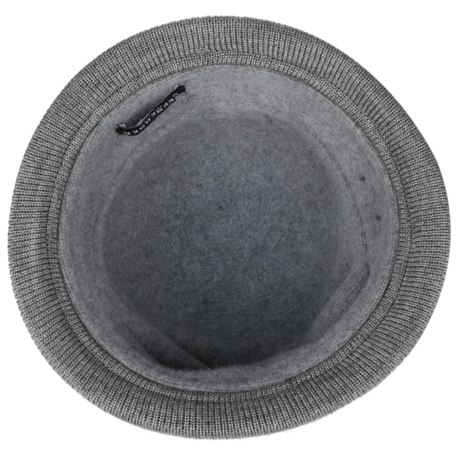Aus hochwertiger Schurwolle mit warmem Charakter und in unifarben meliertem Design gefertigt präsentiert sich der Walkhut, der durch asymmetrische, halb umlaufende Biesen sowie einem schick aufgerollten Strickrand aus einer Wollmischung seine gelungene Vollendung erhält. Gemütlichkeit und Eleganz vereinen sich in dem Filzhut in gekonnter Kombination.