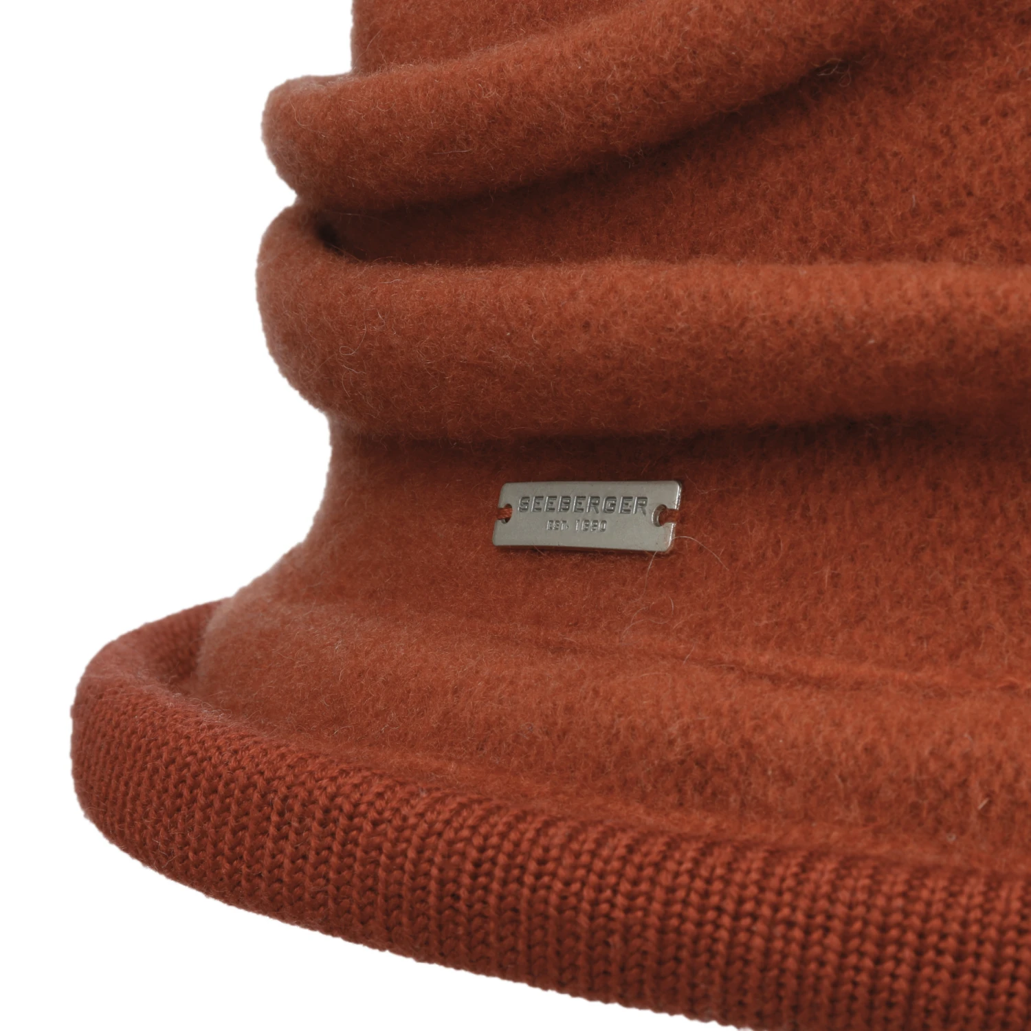 Das seitliche metallene Markenemblem zeigt: Der behagliche Glockenhut stammt aus dem Hause Seeberger.