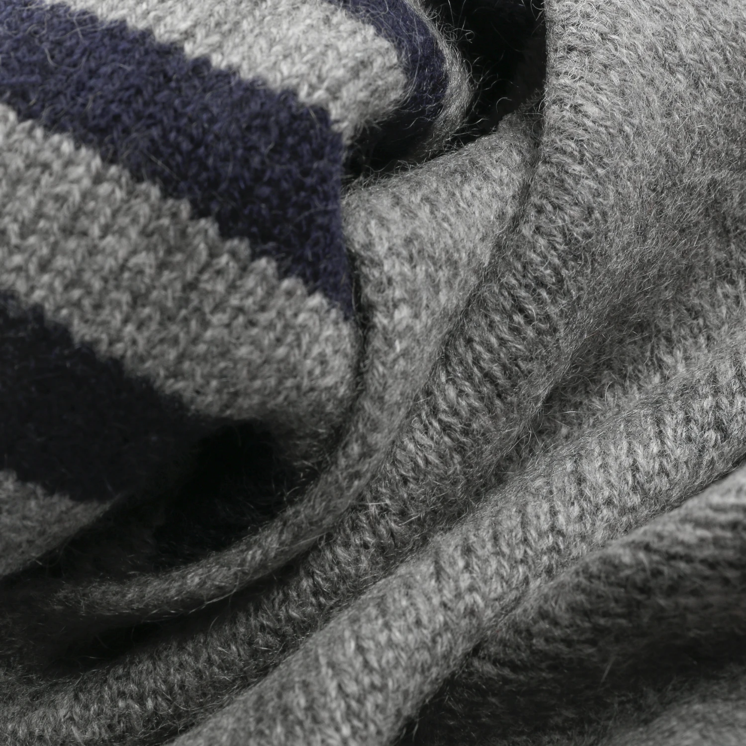 Zu 100% aus anschmiegsamen Kaschmirfasern gefertigt, legt er sich wunderbar weich um den Hals. Seine sportive Ausstrahlung verdankt der von Hand gefertigte Strickschal den schmalen Streifen, die eines seiner Enden zieren. Das zeitlos modische Design lässt sich vielfältig kombinieren.