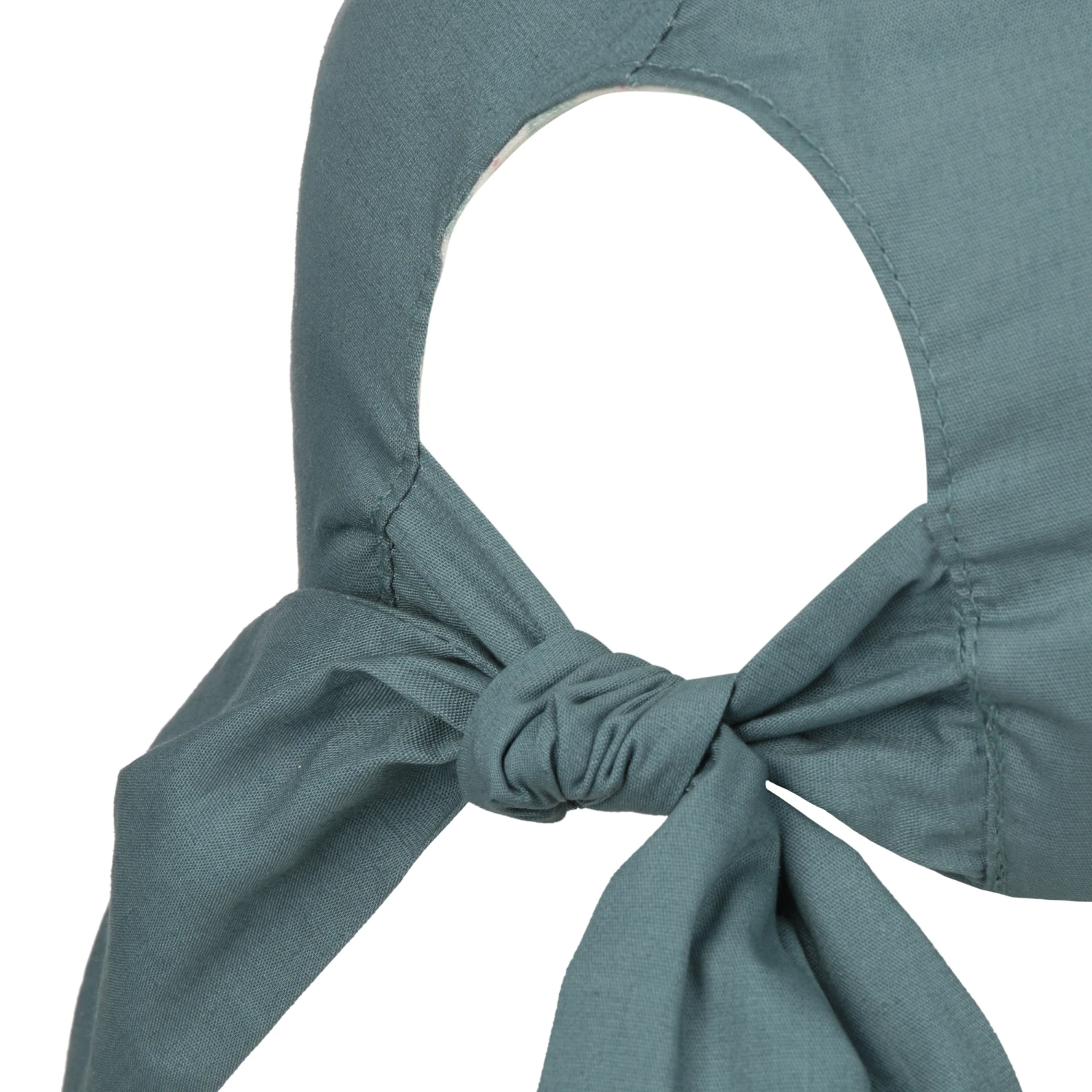 Die Oberseite ist klassisch in Uni gehalten, während von der Unterseite des Schirms ein sommerliches Muster hervorblitzt. Die Bindebänder am Hinterkopf sorgen für den perfekten Sitz und einen femininen Touch.