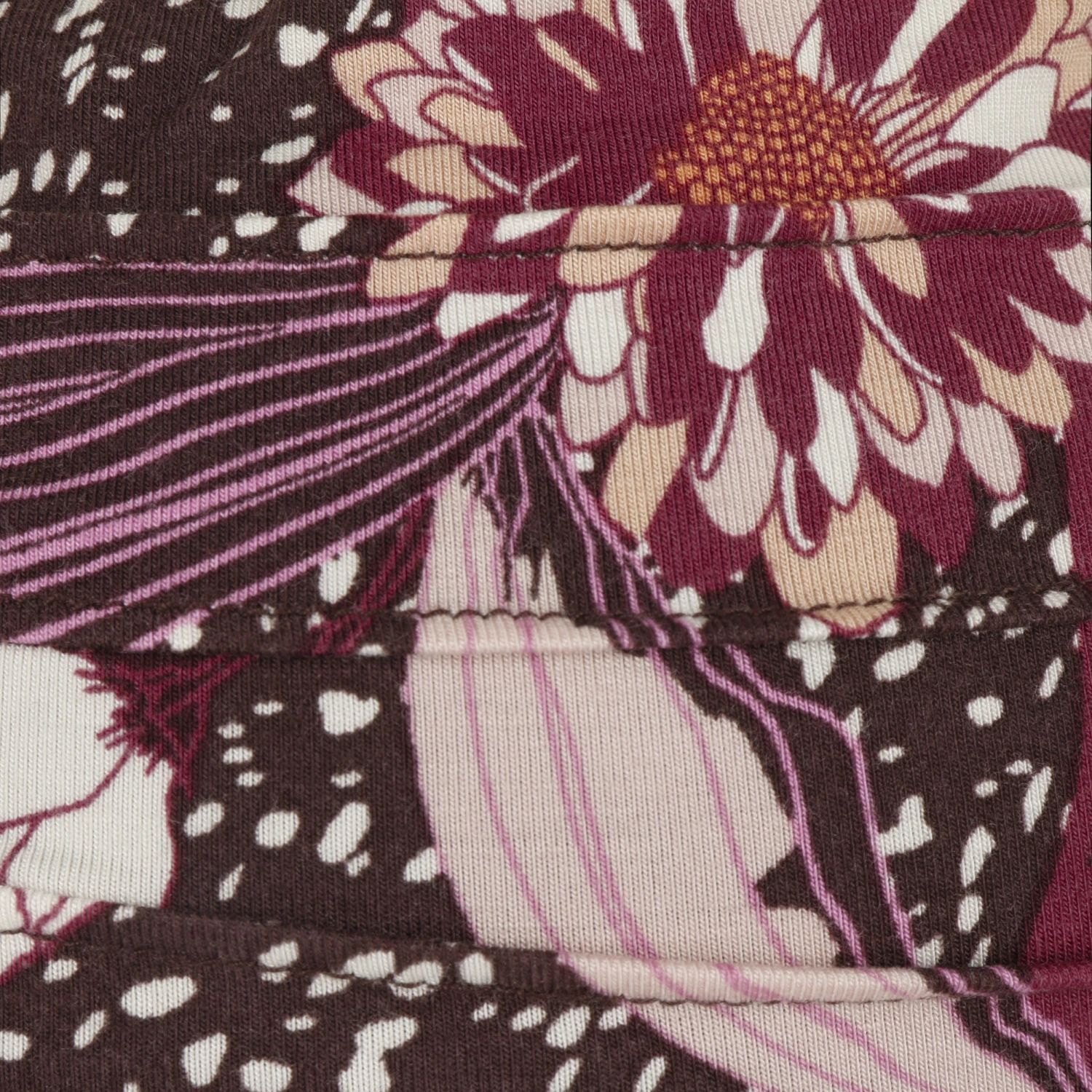 Ganz anschmiegsam weich wie ein geschmeidiges Kopftuch ist der Turban von Christine Headwear, der mit seiner farbig gestalteten Blütenpracht gute Laune in den Tag bringt.